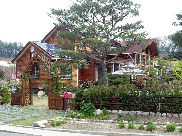 남향, 통목조구조, 산자락, 예쁜정원,태양광