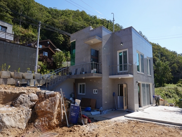 정원은 기본 잔디 조경으로 마무리 예정이며 주택과 접한 개울 쪽으로 내려가는 계단 시설 예정입니다.