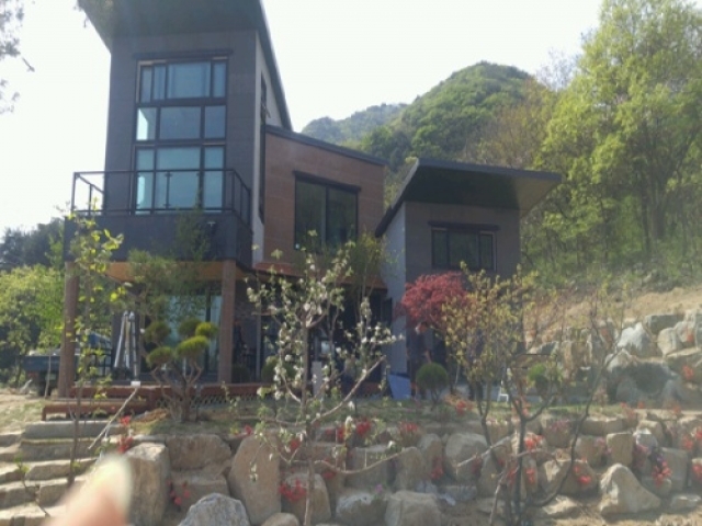 산자락 깊은곳의 동남향의 신축 전원주택