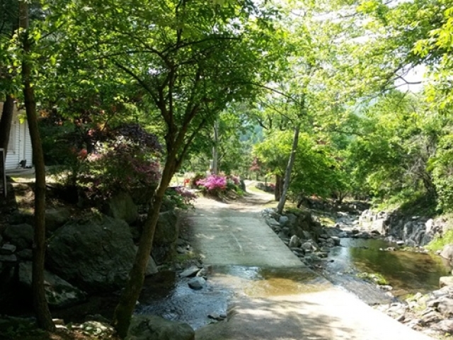 산음 휴양림 인근에 마르지 않는 계곡에 접한