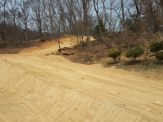 공사중이며 완만한 지형의 임야 상태의 토지입니다.