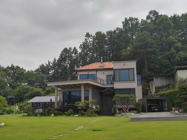 북쪽으로 탁트인 남한강 조망이 시원하며 산자락에 둘러싸인 지형에 자리한 주택입니다.