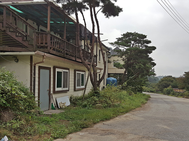2차선 도로변의 음식점,펜션
