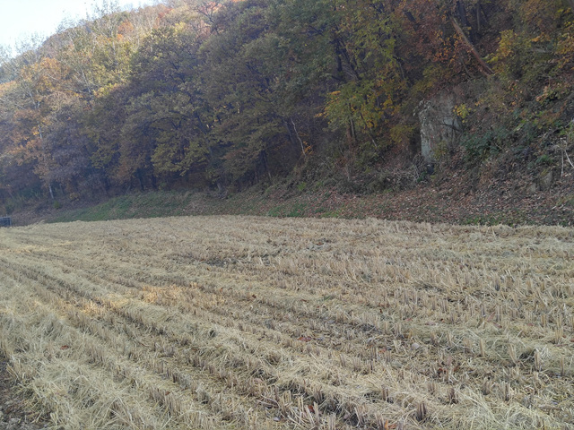 2차선 가까운 산자락 논
