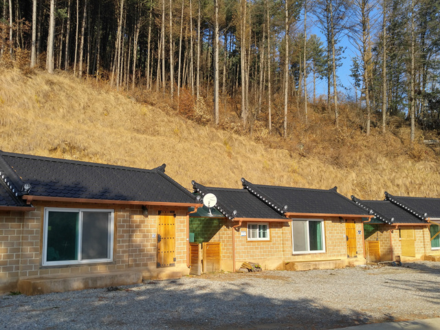 남향, 펜션으로 이용중(각각 방1, 욕실1), 3세대 12평, 1가구 9평, 구들방, 4m 포장도로, 지하수, 하수종말처리