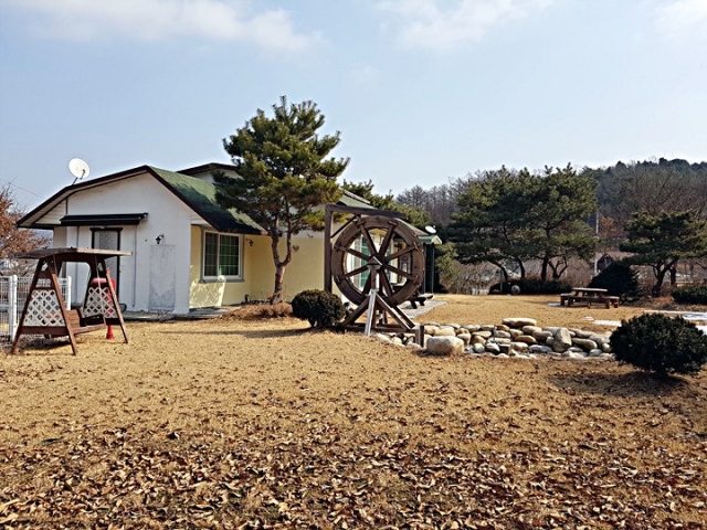 조경이 멋스러운 정원이 넓은 전원주택으로 인근에 넓은 개울을 도보로 이용할 수 있는 위치입니다.