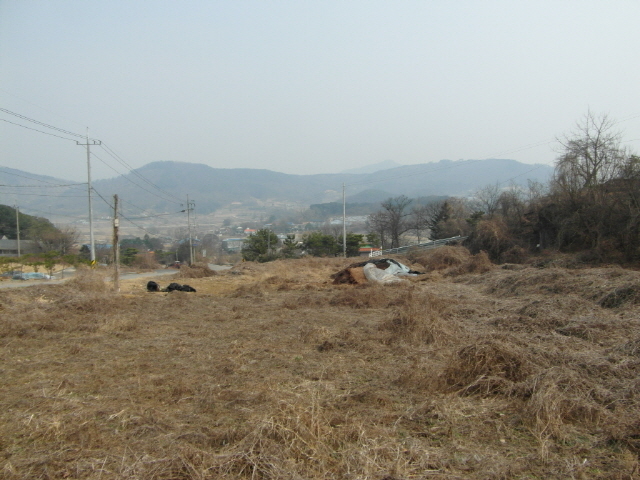 한적한 2차선 도로에 접한 토지로 남쪽으로 야트막한 임야에 접하고 동향으로 조망 시원하게 트여 있습니다.