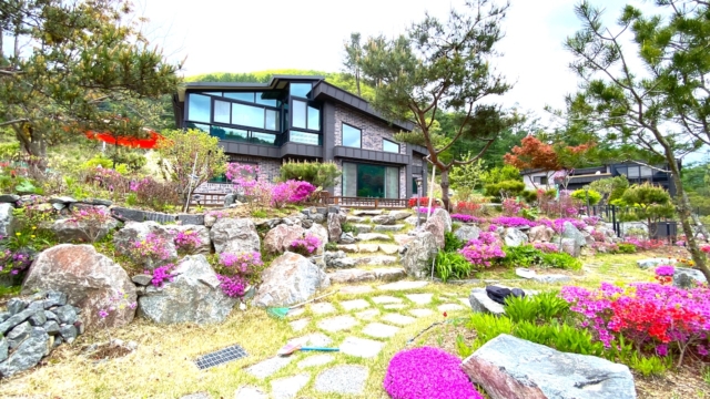 국유림으로 둘러싸인 자연환경 좋은 위치, 꽃나무가득한 예쁜정원, 동향, 대지932㎡(281.9평)+도로지분36평, 텃밭, 주차박스24㎡(7.3평), 드레스룸, 2층 창고와 테라스, 이중창, 지하수, 정화조
