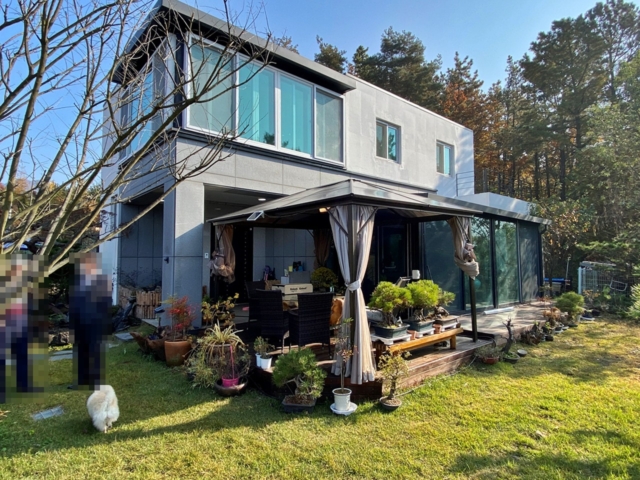 | 남서향, 대438㎡(132.5평), 주차박스, 썬룸, 이중창호, 잔디, 연못, 지하수, 정화조 |
