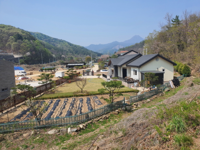 용문산 봉우리조망, 평탄한 지형, 고급기와, 세라믹타일, 지하수, 정화조