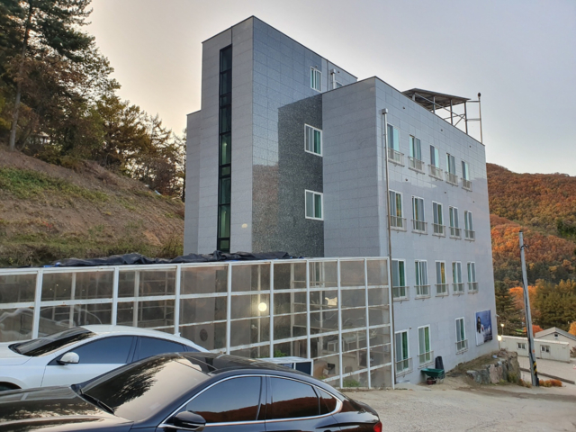 | 임야81569㎡(24674평), 대지2026㎡(612.9평), 답27㎡(8.2평)+도로지분1170㎡(612.9평), 1층:강의실 5개/룸 총 33개/주방/공용 화장실, 2층/3층/4층:각각 룸 11개/공용 화장실/공용 샤워장, 지하공간(약30평/대장외면적)근린생활시설 2종, 태양광19kw, 이중창호, 상수도/개별지하수, 정화조 |