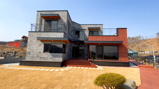 남한강산책로 도보이용가능하고, 강조망 좋은 모던한 디자인의 신축전원주택입니다. (현재 미등기이나 준공 후 등기예정입니다.)