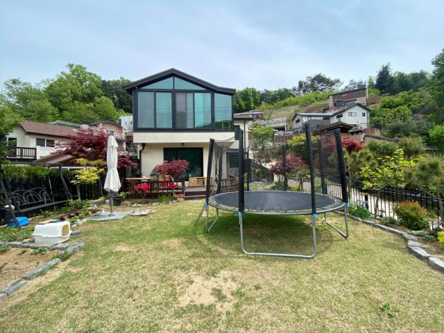 남서향, 대312㎡(94.4평), 주택116.24㎡(35평), 차고36㎡(10.9평), 창고, 2층 썬룸. 잔디, 지하수, 정화조