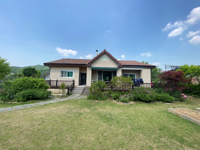 남향, 대1433㎡(433.5평), 도로지분120㎡(36평), 이중창, 주택 43평 + 창고 5평, 지하 저장고 5평 붙박이장, 벽난로, 잔디 마당과, 조경수, 넓은 텃밭, 상수도, 정화조, 오수관로