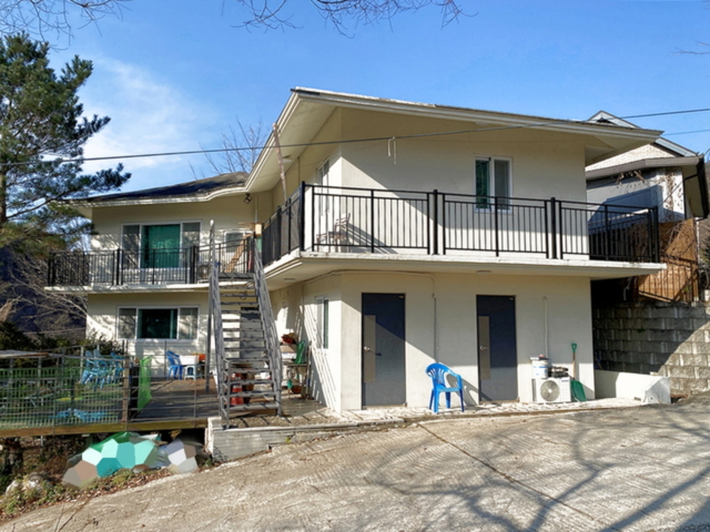 | 남향, 대694㎡(209.94평), 도로지분49.58㎡(15평), 상수도, 오수관로 1층 원룸형 / 방1, 주방, 욕실1 1층 원룸형 / 방1, 주방, 욕실1 옵션: 에어컨, 싱크대, 인덕션 (임대놓으려고 원룸형 분리 세대로 만들어 놓음) 1층 안채 방2, 거실, 주방, 욕실1 (아드님과 부모님 거주중) 2층 방3, 거실, 주방, 욕실1 (현재 친동생분이 무상 거주중) 지하 1층 (연면적 제외 공간) 화장실1 / 중간 분리가벽으로 남녀 구분되어 있으며 양변기 남 3칸, 여 3칸, 샤워실 남녀 각각 1칸씩 있음 전체 리모델링 하심 (외장 스타코, 창호, 화장실 올수리, 방바닥새로함) |