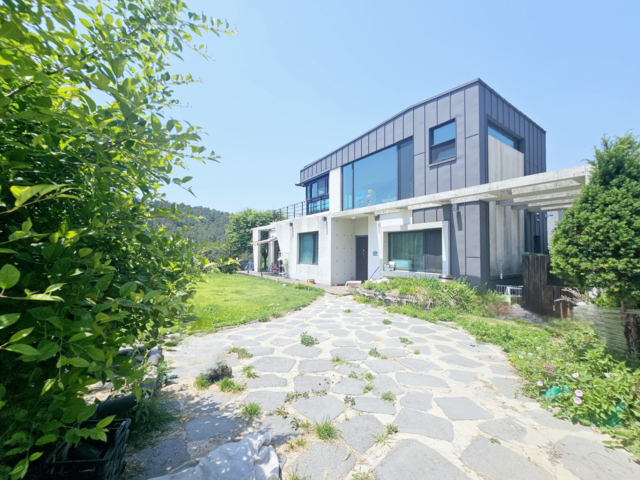 | 남향, 대456㎡(137.94평), 답20㎡(6평), 도64㎡(19.36평), 이중창, 2층 테라스(옥상)공간 1층 : 방 2, 거실 1, 주방 1, 욕실1, 다용도실 1, 2층 : 방 1, 썬룸 1, 테라스 1, 지열보일러 / 태양광 잔디마당과 주택 경계로 조경수와 조형물, 개별지하수, 오수관로 |