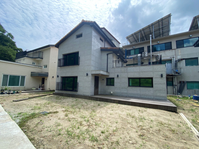 동향, 대265㎡(80.16평), 도로지분33㎡(10평), 이중창, 상수도, 오수관로 - 철콘 2층 주택 연면적 50평(다락 12평 포함) - 1층 : 방2개, 욕실1개, 거실, 주방, 다용도실 - 2층 : 방2개, 욕실1개, 거실겸 주방, 창고, 외부 테라스 - 2층은 외부 계단 설치하면 주거 분리 가능함 거실겸 주방 공간으로 현재 주방 가구 설치 예정 - 포치 공간에 넓은 데크 설치되어 있음