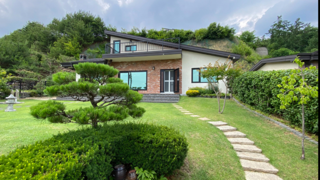 산으로 둘러싸인 자연환경 좋은 위치, 소나무와 꽃나무가 어우러진 아름다운 정원, 야외쉼터, 전동차고, 막힘없는 시원한 산세전망, 대지 477㎡(144평)+도로지분98㎡(30평), 잘관리된 주택 내외부, 시스템창호 남향, 넓은주방, 넓은다용도실, 아궁이방, 붙박이장, 2층 오픈형다락방, 단독지하수, 정화조시설.