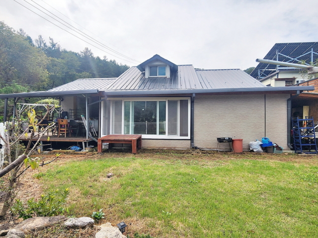 오수관로 / 일반 전기, 농업용 전기, 태양광 전기 / 기름보일러, 마당 잔디, 원목 데크, 야외테이블