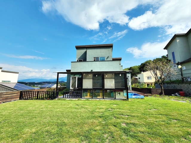 남서향, 대416㎡(126평)+도로지분83㎡(25.11평) - 2015년도 준공된 일반목구조 구조의 2층주택, 연면적: 33평 1층 18.82평 방: 1개 거실: 1개 주방: 1개 욕실: 1개, 2층 11.70평 방: 2개 욕실: 1개 실내 : 단창, 이중창, 시스템 창고 2.54평(컨테이너), 썬룸은 준공 후 증축(현재 캣타워등이 있음), 화장실을 제외한 모든 문은 슬라이딩 도어 독일식 3중 시스템 창호, 상수도 / 태양광3Kw / 야외 수돋가 / 나무휀스 /조경수, 원목 데크(보수필요) 주차박스처럼 되어 있으며, 지붕은 태양열설치되어 있음 (전기차 충전기 시설 설비 완료) 퇴거시, 창고(컨테이너) 및 잔디깍기, 식기세척기 등은 드린다고 하심.