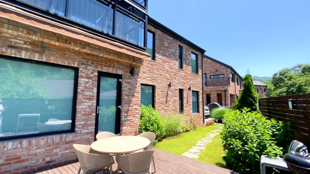 깔끔하게 정돈된 아담한 정원과 수영장, 조적과 징크지붕, 전기차충전시설, 독일식3중유리시스템창호,