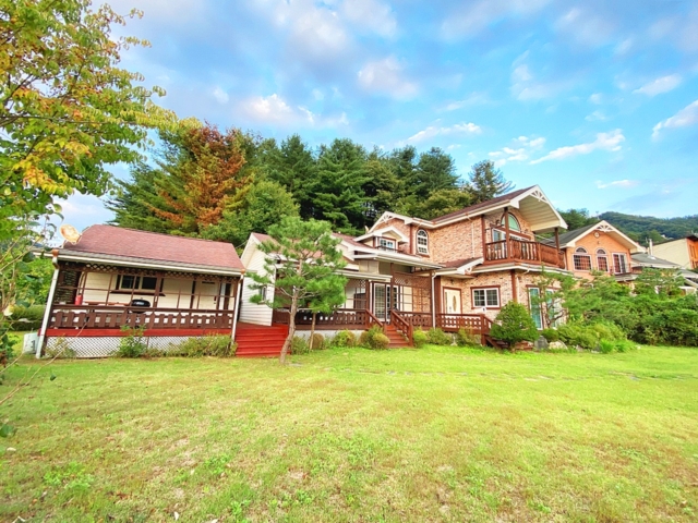남서향, 대660㎡(199.65평), 전314㎡(94.99평), 임375.47㎡(113.58평), 도72㎡(21.78평), 상수도, 오수관로 - 남서향으로 멀리 산을 바라보는 전망​ - 2009년4월 준공 / 목조 / 2층 구조 / 주택 68.1평 - 원룸형 5호실 구조 동일/ 방5, 주방5, 욕실5 (구조: 원룸형, 주방, 욕실1, 개별 바베큐) - 본채 / 1층 원룸형, 거실, 주방, 욕실1, 다용도실1, 2층 방3, 거실, 욕실1 - 옵션: 에어컨, 인덕션, 침대, 냉장고, 티비, 전자레인지, 화장대 포함 - 부1 / 대장상 창고이나 원룸형 구조로 되어있음​ 조립식 창고1 - 마당은 기본조경, 잔디, 소나무, 야외수돗가, 디딤석으로 되어있음