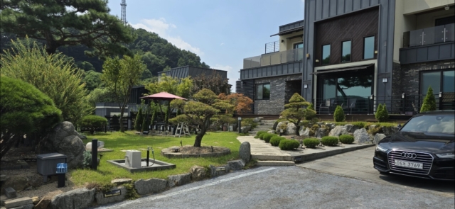 6번국도 접근성좋은 고급단지내 위치, 소나무와 꽃나무가 어우러진 아름다운정원, 야경이 더 아름다운 정원, 유실수, 창고, 동남향,대609㎡(184.22평)+도로 지분 53㎡(16평), 후문을 통해 바로 주방으로 진입가능, 후원에 바베큐시설, 천고가 높아 개방감 좋으며, 산세전망이 좋은 위치, 모던한 디자인의 고급스런외관, 시스템 냉난방기, 붙박이장, 편백마감욕실, 해링본 마루, 2층 간이주방, 상수도, 정화조, 도시가스 인입가능,