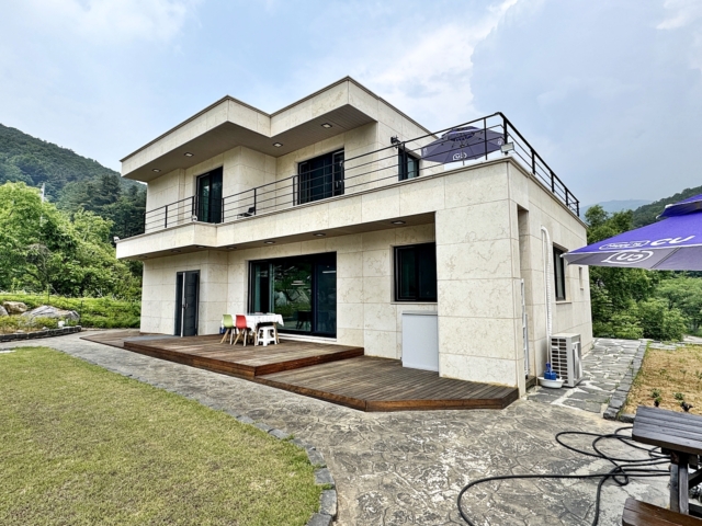 평탄지 남서향 전망 ,2024년준공, 철근콘크리트, 0/2층 ,주택 42.6평, 정화조, 2채공동지하수, 다용도실, 1층 방1개, 거실, 주방, 욕실2개 ,2층 방2개, 욕실1개 ,기본조경, 잔디정원, 철재대문, 데크+식탁,의자 주택뒤쪽 작은데크, 텃밭, 마당수도시설, 조경수, 조경석, 2층 테라스, 대561㎡(169.7평)