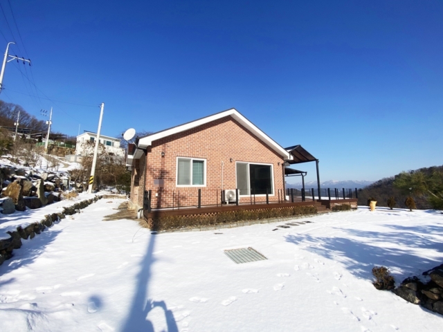 | 남동향, 대546㎡(165.17평), 도로지분114㎡(34.49평), 이중창 - 남동향으로 트인 조망 - 2020년 준공 목구조, 0/1 구조, 주택 30평, 1층 방2, 거실, 주방, 욕실2, 다용도실 옵션: 에어컨, 붙박이장, 돌침대, 냉장고, TV는 매수자 필요시 놓고 가신다고 함, 개별 지하수, 개별 정화조 - 조경석, 평잔디, 디딤석, 데크, 경계 기본 조경 |