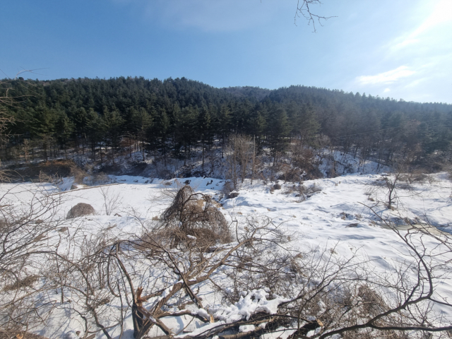 | 남향, 답5452㎡(1649.23평), 평탄지/휴경지, 국유림접, 버스 600m, 편의시설 6.8km, 철도 삼산역 3.1km |