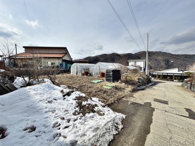 | 남향 전451㎡(136.43평) 도93㎡(28.13평)토목공사완료-조경석, 비닐하우스 2동 설치 밭에 상수도 배관공사 - 버스정류장/2차선도로 400m 편의시설 500m , 계곡 300m |