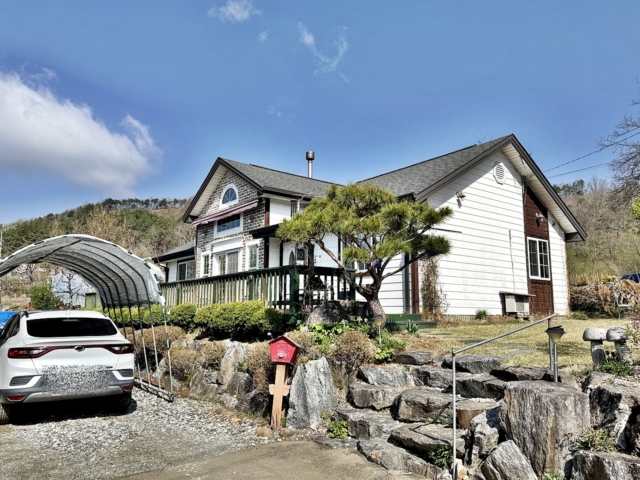| 남향, 대441㎡(133.4평) - 정남향으로 채광 우수함 - 2011년 준공 목구조, 0/2층 구조, 주택 34평 1층 31평 : 방3, 거실, 주방, 욕실2, 다용도실, 2층 3평 : 다락방, 개별지하수, 정화조, 벽난로 - 데크, 평잔디, 자갈포장, 디딤석, 조경석, 경계 기본 조경, 텃밭 |
