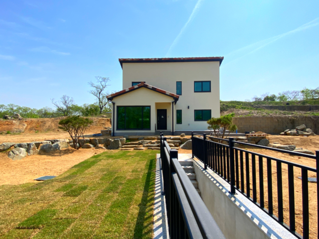 서향, 대392㎡(118.58평), 도로지분69㎡(20.87평), 시스템창호 - 서향으로 트인 산조망 - 2025년 3월 준공 목구조, 0/2층 구조, 주택 27.4평 + 주차박스 17.8평, 1층 : 방1, 거실, 주방, 욕실1, 다용도실 2층 : 방2, 욕실1, 상수도, 정화조, 전기통신 지중화 - 석재데크, 평잔디, 조경석, 조경수