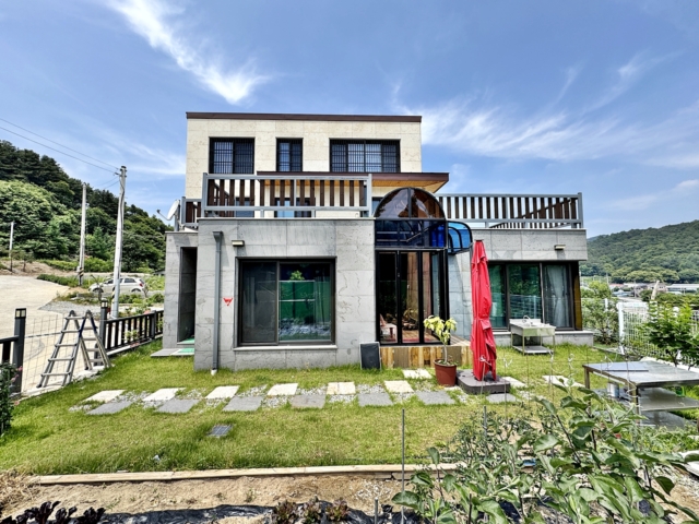 4m 시멘트 포장도로, 남향으로 트인 산세 조망, 잔디+자갈마당, 디딤석, 텃밭, 조경수, 야외수전, 창고大, 골프 퍼팅 연습장, 경계는 일부 철재+목재 펜스 시공 ,주택 1층 앞면 가운데 목재 데크+썬룸 설치, 시스템 에어컨 총4대, 주택 36평+다락 11평, 1층(25평): 방1, 거실, 주방, 욕실2, 다용도실, 창고1, 썬룸1 2층(11평): 방2, 욕실1, 테라스1 , 다락방(11평): 좌/우, 2층 테라스, 지하수, 정화조 ,계획관리지역 지방도 및 버스정류장 600m, 동양평 톨게이트 2.7km ,양동역 4.2km, 양동 중,고등학교 4.4km