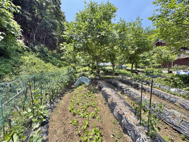 2차선도로 인근 산자락접한 밭
