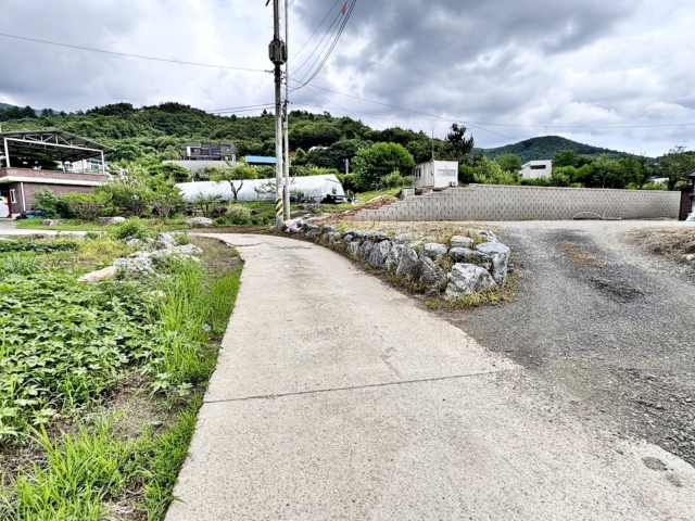 2차선도로에서 120m거리. 토지 바로 옆으로 국유지의 도로가 있으며, 오수관 우수관이 있음.