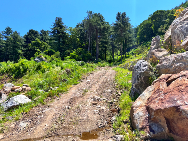 진입부분 도로 개발중이며,,4~5M 시멘트 포장도로 + 비포장 현황도로로 되어 있음