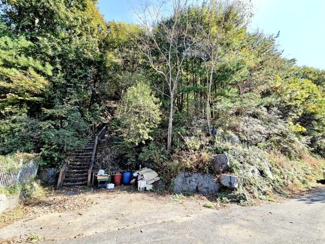 해당토지까지 사실상 접근이 어려운 상황임.(파손된 나무계단아래 원래있던 돌 계단 있음)