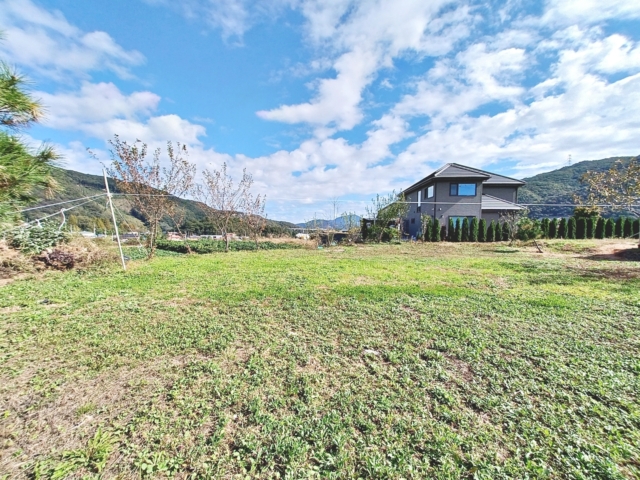 전체적으로 남동향 전망이나 서향으로 탁 트인 전망, 보전관리지역 조경석 석축 평탄화 완료된 임야,지방도 인접하는 부분에 돌계단 작업해 놓음 단지 내 공동지하수 연결되어 있으며,정화조 매설되어 있다고 하심,도로에 전신주 있음 6M 아스팔트 포장도로, 사도(도로지분 보유),전원단지내에 위치,2차선 지방도를 접하고 있음 버스정류장 400m,동곤지암IC 약 9.7km,남양평IC 약 9.6km,여주시 산북면 생활권 6km