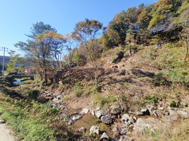 | 완경사지 남서향이며 정면 고속도로에의해 일부전망가림,채광 있음 보전관리지역, 완경~중~급경사,입구 초입에 아래 도로 국유지를 이용해서 건축허가 1채 득한상태라고함,초입 일부 벌목되어 있음,안쪽으로 완경사 자연림상태 좌측 임야 범면부분 암반 급경사지,우측 구거와 해당토지 단차 있음 수량많은 구거이며 제방공사필요해보임, 5m 시멘트포장도로, 도로 국유지 2차선도로 약 1.5km 거리.버스정류장 약 1.8km 거리,지하철 국수역 약 3.7km 거리 양서면사무소 약 12.8km 거리 |