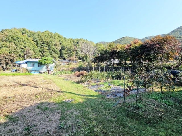 앞마당 넓은 정원공간 있으며 대부분 밭으로 사용중,경계선을 따라서 소나무조경 되어 있음