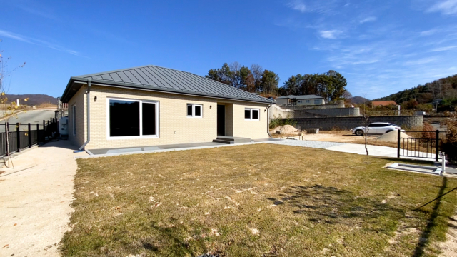계곡인근의 자연환경 좋은 집, 단층구조의 편리한 설계로 어르신 살기 좋은 신축 주택입니다. |