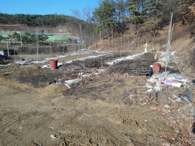 현재 밭으로 이용중인 토지로 남향으로 길쭉한 모양으로