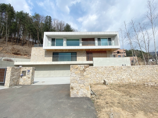 | 대460㎡(139평)+도로지분62㎡(19평), 전자동대문, 대리석 데크 시공, 남향, 오수관로, 상수도, 기본조경, 자작나무, 잔디, 야외수도, 경계휀스로 되어있음, 전기/통신 지중매설, 외부 보일러실, 창고, 김치냉장고/냉장고/냉동고/식기세척기 빌트인, 드레스룸, 2층 베란다 남향으로 마을과 멀리 산을 바라보는 전망, 6m포장도로, 문호리생활권 약 2.9km(차향8분) 1층 방1, 거실, 주방1, 보조 주방1, 욕실1, 창고 / 2층 방2, 드레스룸+세면대, 욕실2, 테라스2 |