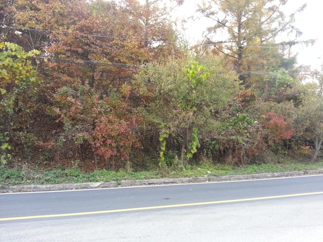 자연림상태, 2차선접함, 건축허가 60평 허가득, 정면 공원조성됨,