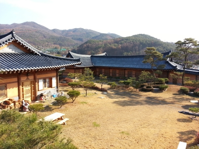 한화리조트 초입마을의 주택으로 나즈막한 산자락에 위치하고 있으나