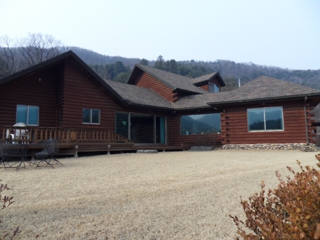 청정지역의 넓은 토지를 지닌 통나무 전원주택으로