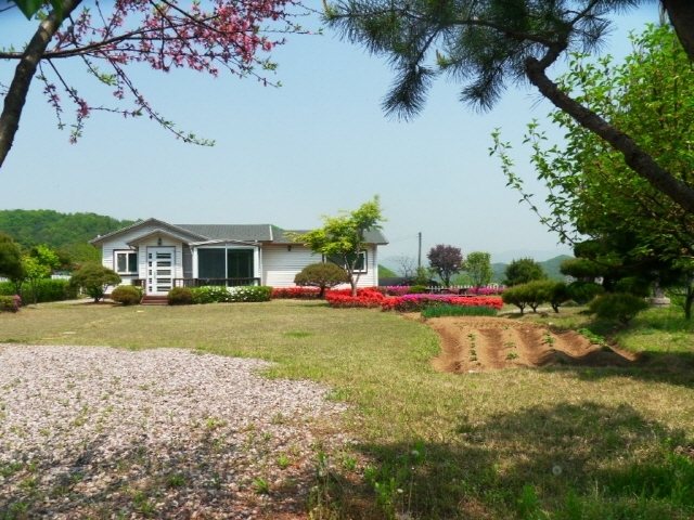 정원은 잔디마당으로 소나무, 텃밭, 원두막으로 꾸며져있습니다.