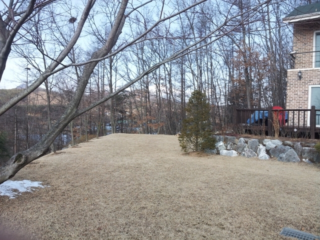 정원은 잔디와 소나무및 유실수 20여 그루가 주변 산의 자연수와 조화를 이루며 정원조경이 매우 잘 되어 있습니다.