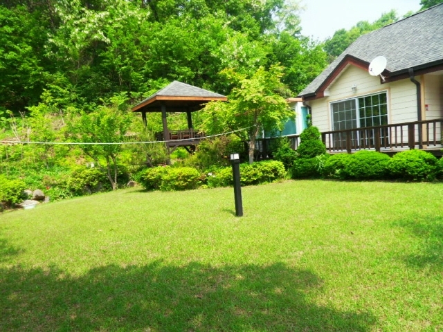 산자락을 일부 개간하여 텃밭으로 사용중이며 정원은 잔디밭에 정원수,유실수,정자가 있습니다.
